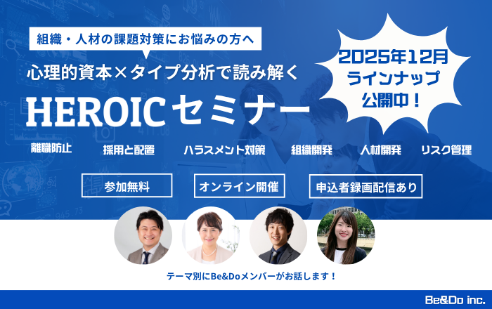 本セミナーでは、心理的資本とタイプ分析を活用した課題解決のヒントをお届けします。